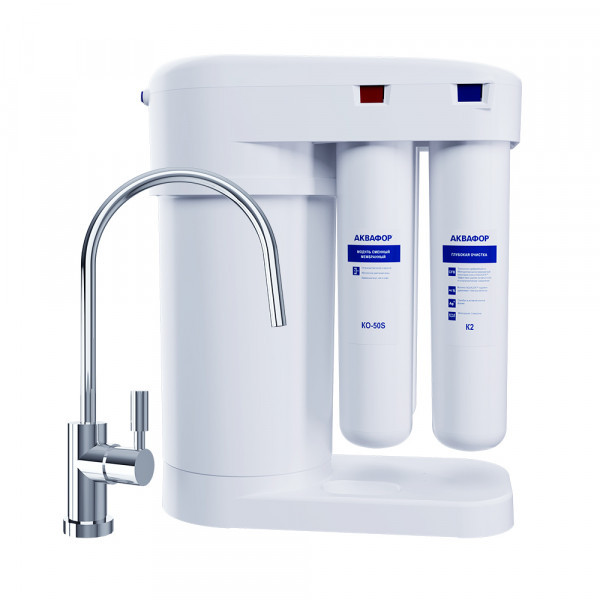 Обратноосмотические фильтры используются для абсолютной защиты от накипи, т.к. полностью устраняют соли жесткости из воды.даЧисло ступеней очисткиКартриджи последовательно очищают воду и от видимых примесей, и от растворенных. Первый картридж задерживает более крупные частицы, а каждый последующий - более мелкие. Чем больше ступеней - тем лучше фильтр очистит воду: поймает более мелкие видимые частицы ржавчины, песка и ила, успеет захватить из воды максимум растворенных примесей - хлора, нитратов, тяжелых металлов и других.4МинерализацияПроисходит после финишной очистки воды. Необходима прежде всего в фильтре обратного осмоса, поскольку такой фильтр полностью устраняет из воды все примеси, в том числе минералы. Минералы добавляются в оптимальной концентрации - для пользы и привычного вкуса воды.даПостфильтрацияФинальный этап очистки воды: картриджи постфильтрации удаляют самые мелкие механические частицы и кондиционируют воду, придавая ей более приятный вкус.даНакопительная емкостьОбычно нужна в фильтрах обратного осмоса. Глубокая фильтрация требует времени. Чтобы Вам не приходилось ждать, пока вода наберется в чайник или кастрюлю, почти во всех моделях используется накопительный бак для чистой воды или другая емкость. В стандартном фильтре обратного осмоса под мойку воды в баке достаточно для семьи из 5-6 человек.даФильтрующий модуль в комплектедаОтдельный крандаДавление в водопроводе не более, атмМаксимальное давление воды на входе в систему, при котором возможна стабильная работа фильтра.6,5Ширина, смОбратите внимание на габариты фильтра, и измерьте, сколько свободного пространства в предполагаемом месте установки.37,1Глубина, смОбратите внимание на габариты фильтра, и измерьте, сколько свободного пространства в предполагаемом месте установки.19,0Защита корпуса от гидроударовдаИсходная водаЖесткая вода – вода с избытком минеральных солей. От нее появляется накипь в чайнике, известковый налет на сантехнике и разводы на посуде. Мягкая вода – та, в которой мало минеральных солей. Нет накипи в чайнике и разводов на посуде. Фильтры для мутной воды и фильтры от ржавчины, как правило, имеют несколько стадий очистки и дополнительный полипропиленовый картридж. Он задерживает механические частицы ила, песка и ржавчины и защищает картриджи более глубокой очистки.любаяУстраняет мутностьМутность водопроводной воды может говорить о том, что в ней много мелких механических частиц. Важно, чтобы в фильтре был установлен дополнительные картридж механической предфильтрации (полипропиленовый) - он продлит жизнь остальным картриджам более тонкой очистки.даУстраняет ржавчину, бурый осадокЛюбой фильтр под мойку удалит из воды крупные и мелкие частицы ржавчины. Некоторые фильтры имеют повышенный ресурс по железу: они дольше служат в такой воде, поскольку лучше подходят для удаления из воды железа и механических частиц ржавчины.даЗащита от бактерийВсе проточные фильтры в той или иной степени защищают от бактерий. Например, добавление серебра препятствует их размножению. Это стандартная степень защиты. Если в семье есть дети, пожилые люди или аллергики, воду рекомендуется обеззараживать, то есть полностью удалять микроорганизмы. Повышенную защиту от бактерий дают фильтры с половолоконной мембраной. Это пучок трубок с по