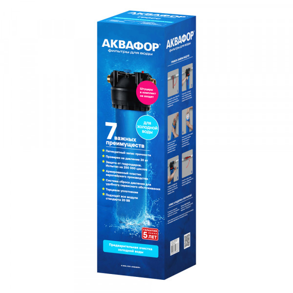 Габариты26,0 x 18,0 x 60,6 смКомплектацияГотовый фильтр состоит из корпуса и картриджа для очистки воды. Если вы приобретаете только корпус, необходимо отдельно купить подходящий к нему картридж: это может быть картридж для механической очистки воды от ржавчины, картридж для глубокой очистки воды от хлора.только корпусВодаКартриджи и корпуса фильтров рассчитаны на определенную температуру воды. Данные технические характеристики важно учитывать, поскольку от этого зависит качество очистки и срок службы фильтра.холоднаяМатериал корпусаПищевой пластик: Допущен к контакту с пищевыми продуктами. Нержавеющая сталь: Долговечный и безопасный корпус из нержавеющей пищевой стали.пищевой пластикДля холодной водыда