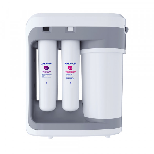 О замене картриджей напомнит звуковая и цветовая индикация ресурса каждого модуля. Встроенный насос обеспечивает стабильную работу даже при низком давлении от 0,9 атм.