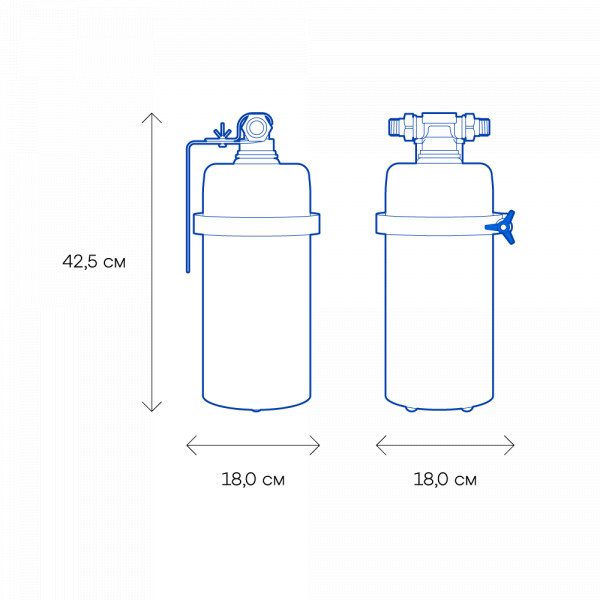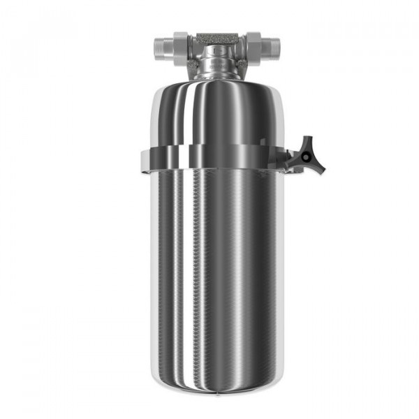 Не забывайте учитывать и срок службы фильтра: он указан в паспорте и определяет, когда модуль нужно заменить, даже если ресурс активной фильтрации в литрах еще есть.25000Вес, кг (нетто) изделия5,8Высота, смОбратите внимание на габариты фильтра и измерьте, сколько свободного пространства в предполагаемом месте установки.42,5Механическая фильтрацияЗадерживает ржавчину, ил, песок, как “сито”. Если в фильтре несколько картриджей - первый отсекает самые крупные частицы, а каждый последующий - более мелкие. Существуют картриджи, в которых есть только механическая очистка (полипропиленовые, не “впитывают” растворенные примеси). Они обычно стоят первыми по ходу воды, чтобы продлить жизнь угольным (сорбционным) картриджам, которые ещё и впитывают вредные примеси, как губка.даСорбцияСпособность “впитывать” из воды растворенные, “невидимые” вредные примеси, по принципу губки. Активированный уголь - основной сорбционный материал, который используется в картриджах фильтров для питьевой воды. Например, именно так из воды удаляется хлор.даФильтрует частицы крупнее, мкмЧем меньше цифра, тем более мелкие частицы способен задержать фильтр. Например, любой фильтр под мойку справится с ржавчиной, илом и песком, но не каждый - с бактериями (на это способен картридж с половолоконной мембраной и системы обратного осмоса). Если в фильтре несколько картриджей - первый отсекает самые крупные частицы, а каждый последующий - более мелкие. Цифра указана для картриджа самой тонкой очистки.1,0Фильтрующий модуль в комплектедаДавление в водопроводе не более, атмМаксимальное давление воды на входе в систему, при котором возможна стабильная работа фильтра.6,5Ширина, смОбратите внимание на габариты фильтра, и измерьте, сколько свободного пространства в предполагаемом месте установки.18,0Глубина, смОбратите внимание на габариты фильтра, и измерьте, сколько свободного пространства в предполагаемом месте установки.18,0Защита корпуса от гидроударовдаСкорость фильтрации, л/минСкорость подачи отфильтрованной воды из крана чистой воды на мойке. Например, при скорости фильтрации 2,5 литра/минуту стакан 200 мл. наполнится меньше, чем за 10 секунд.7,0КомплектацияГотовый фильтр состоит из корпуса и картриджа для очистки воды. Если вы приобретаете только корпус, необходимо отдельно купить подходящий к нему картридж: это может быть картридж для механической очистки воды от ржавчины, картридж для глубокой очистки воды от хлора.готовый фильтрВодаКартриджи и корпуса фильтров рассчитаны на определенную температуру воды. Данные технические характеристики важно учитывать, поскольку от этого зависит качество очистки и срок службы фильтра.холоднаяМатериал корпусаПищевой пластик: Допущен к контакту с пищевыми продуктами. Нержавеющая сталь: Долговечный и безопасный корпус из нержавеющей пищевой стали.нержавеющая стальОчисткаМеханическая очистка: Задерживает ржавчину, ил, песок, как “сито”. В корпусе предфильтра с механической очисткой установлен полипропиленовый модуль. Глубокая очистка: Подходит, чтобы купать детей в чистой воде. Делает прием душа и умывание более приятным. Фильтр глубокой очистки воды во всей квартире не только останавливает ржавчину, ил, песок, но и впитывает растворенные опасные примеси, как губка. Удаляет из воды хлор, хлорорганические вещества, 